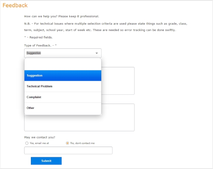 - Create a ticket for a technical issue, a suggestion or other complaint.